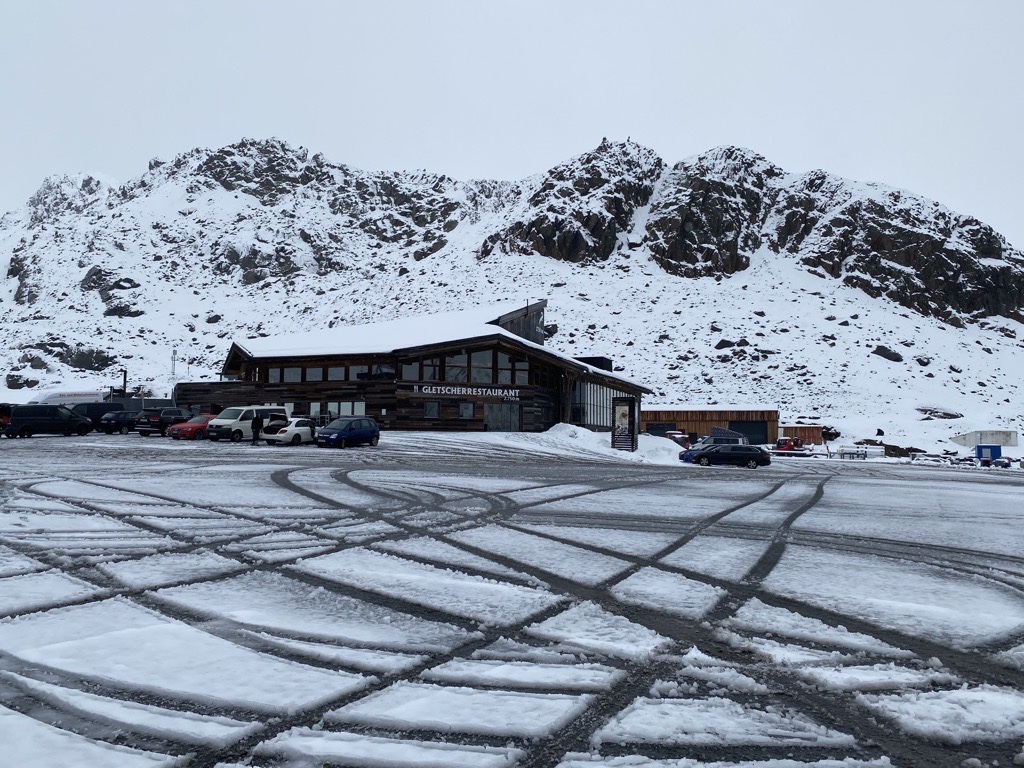 Listening to rock n roll while rolling up & down the snowy alps. First ski lifts are open on top of the glaciers!
