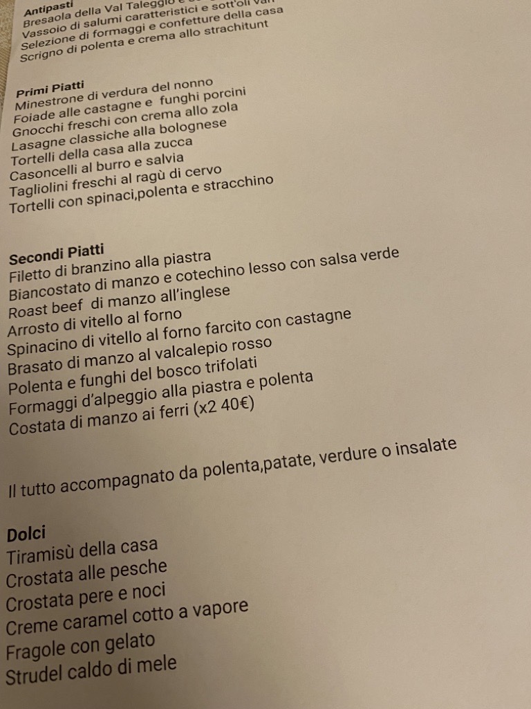Challenge accepted: translating the Italian menu. Finally we are in a non German (or English) speaking part of the world again. Loving it. Choosing from antipasti, primi, secondi, dolci⦠takes us usually 30 minutes. Lol. Itās all part of the culinary experience.