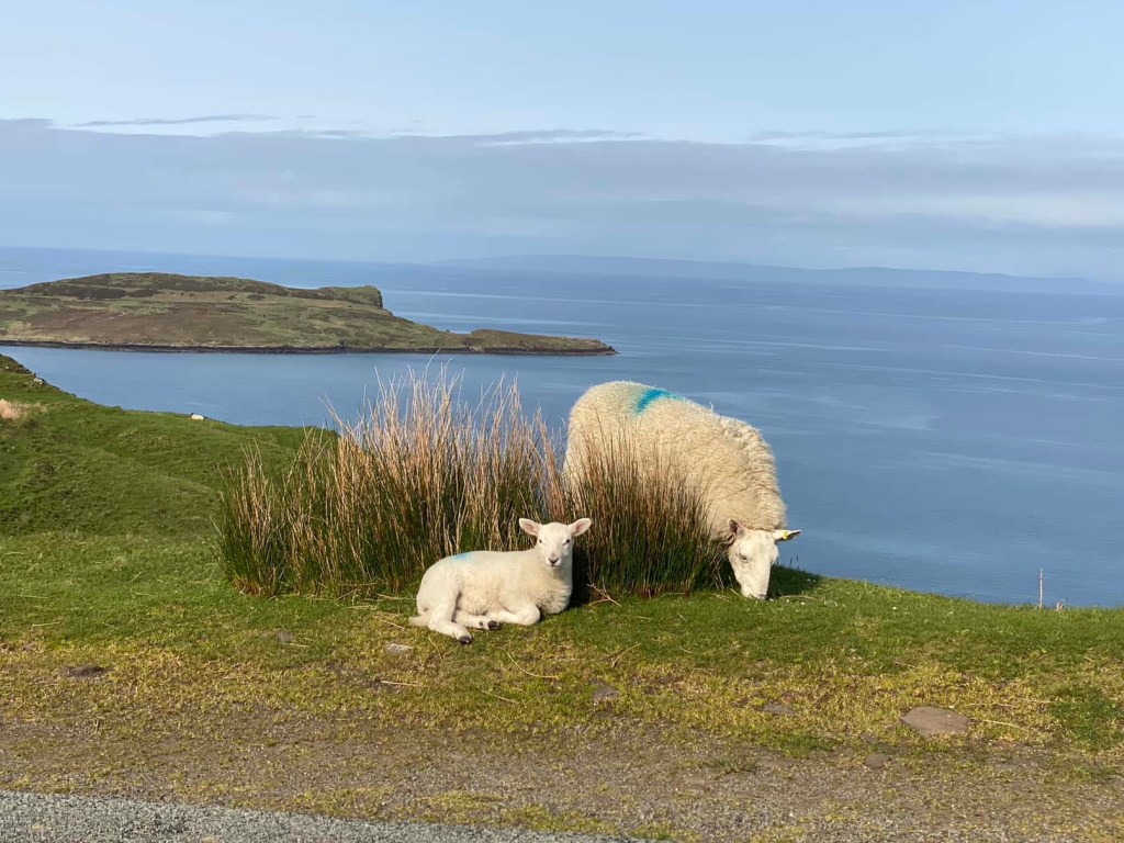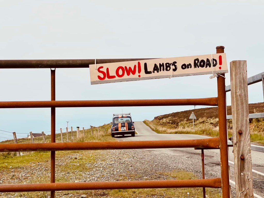 Single track roads. Sheep and lambs on the road. We are on Island time. It can take some time just to move for a couple of miles.