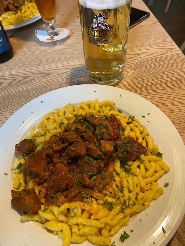 Today we were lucky. Close to the end: Rain. Wet roads. Curves. Maybe oil on our tires and/or on the road… a very bad combination… Aperoli spinning down the hill and stopping 180 degrees turned around later. Scary. Thanks to the car coming from the other side seeing us on time & stopping. Adrenalin rush. We are fine. Aperoli is fine. All good 👍