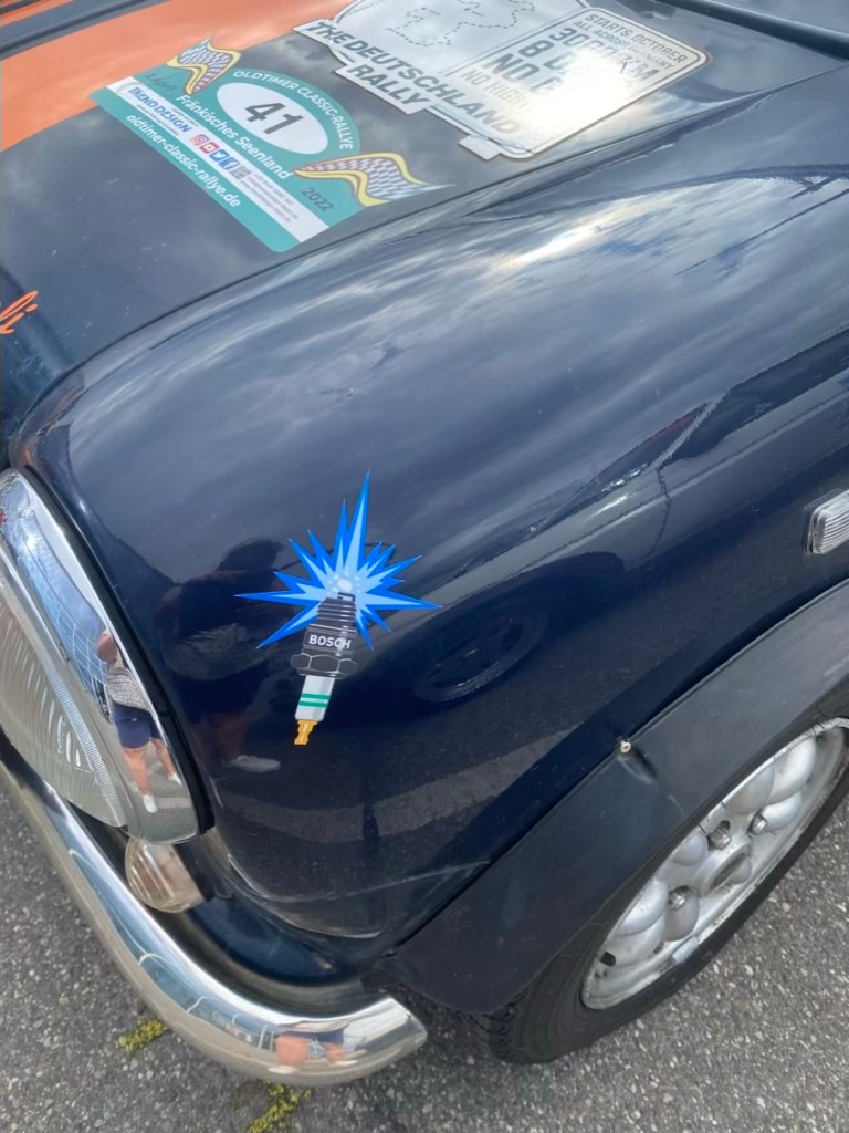 The lucky #108 🏁 Starting #108 out of #140 (apparently random choice and not due to late payment…). Ladies bathroom in the Motorworld 🛞 Beautiful oldies 😍Checking out the roadbook Better fill up for the start next day 🏁Yes 💪🏻 Aperoli is ready: New mirror. New summer tires. Fixed the “rain issue” (voltage shortage). Ready, steady, go! We can do it!The rally plan – very well organized. #likeabosch 😜Bosch Rally, Bosch dog 🐶 Bosch spark plug – inside & outside