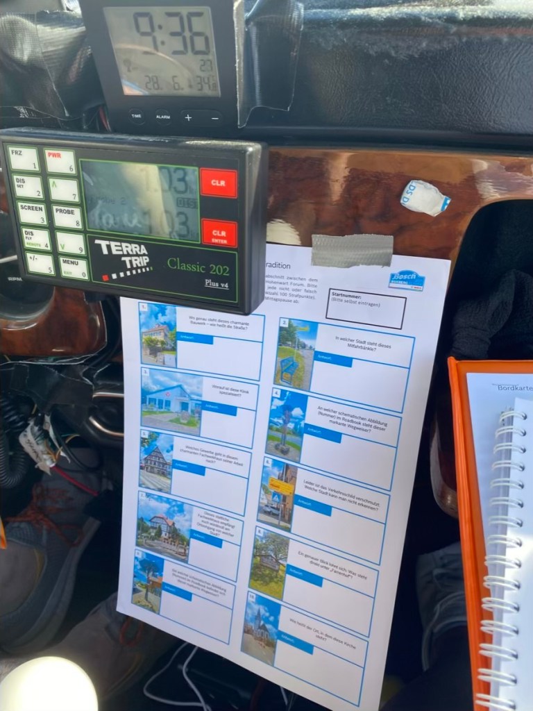 Cruising through the northern part of the Black Forest 🌳 still nice & coolRally work to do and we are pretty well organized (all you need is a big role of gorilla tape 😁)Postcard perfect: the most beautiful weather! O la la Challenge accepted 💪🏻Bit of a Fashion Show Ready for racing 🏁Lunch break The Oldtimers are having a siesta, tooIt’s summer! Our A/C – part1…and part 2 😅 (didn’t help much…)