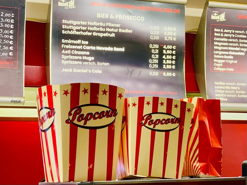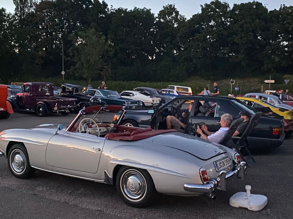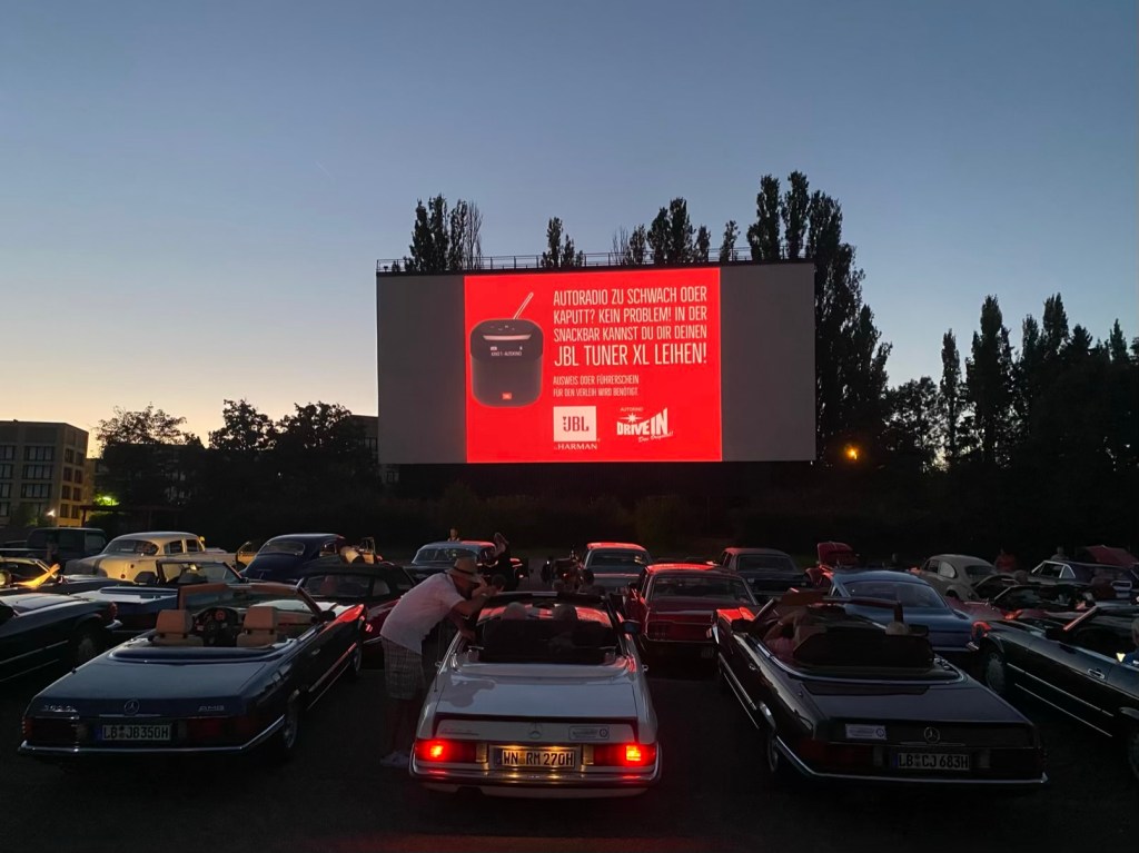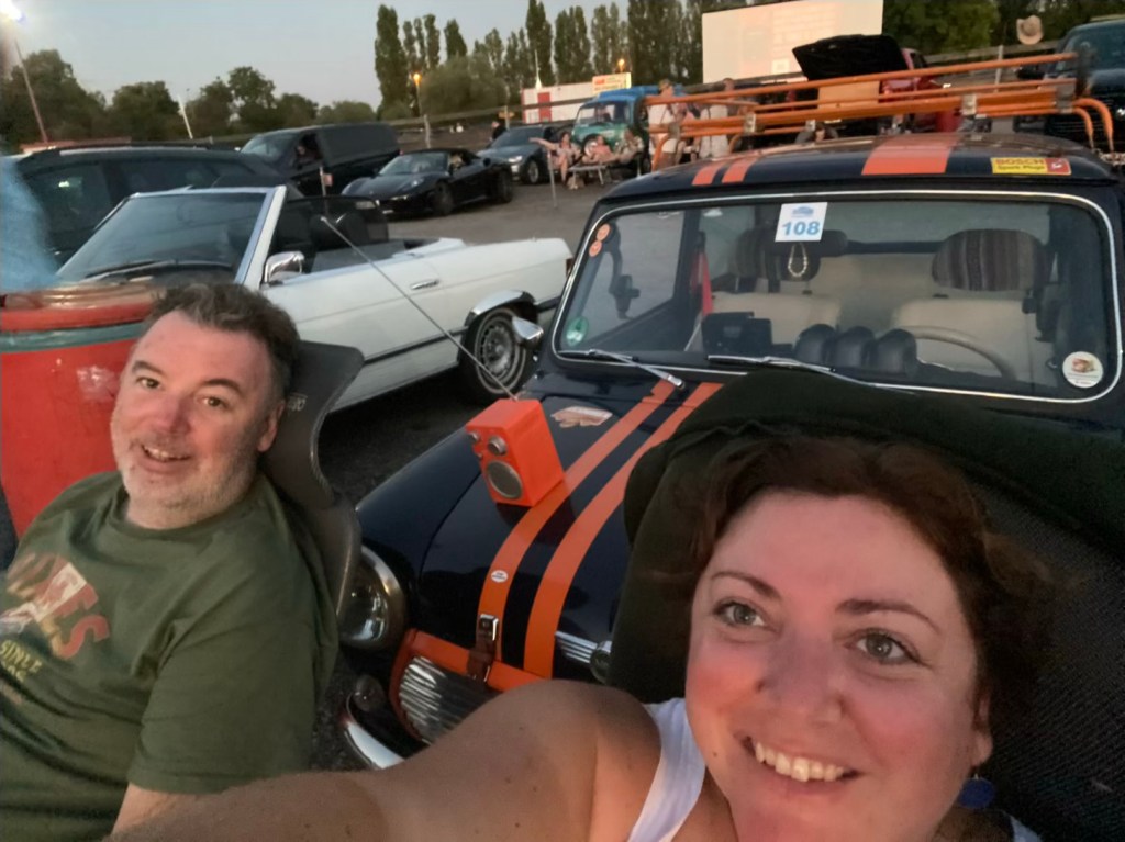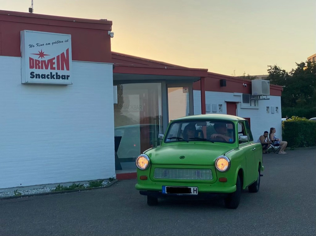 Autokino as soon as it is dark enough. A film from 1981 “The Cannonball Run”. An Oldtimer, of course.
