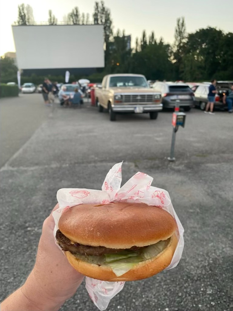 Well, we enjoyed watching beautiful old cars, a burger, and the film! Nice summer night with American flavor like in the good old days (I guess) 🙂