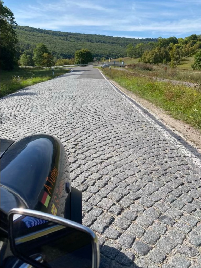 Motorcycles and Oldtimers sharing curvy roads this morning. Some of them really crazy, I thought we might have a bit of a crazy hobby, but no… we are just normal people…